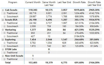 (Important data note: All member counts in this document are of youth members. Adults are not represented in any counts.)