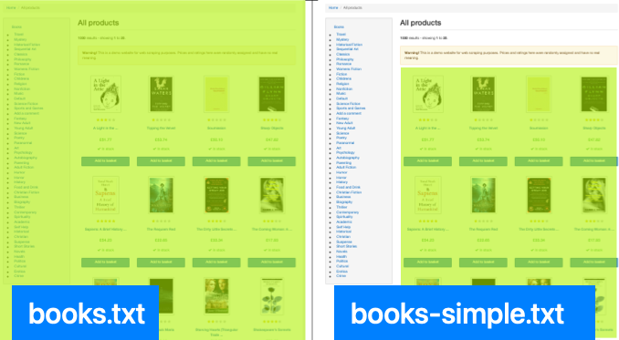 Parse the HTML and collect only information about books, get all the books, not just partially.