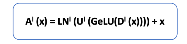 Adapter modules creates a bottleneck architecture where the adapters first project (feed forward down-project weight matrix in the above image) the original d-dimensional features into a smaller dimension, m, apply a nonlinearity, then project back (feed-forward up-project weight matrix) to d dimensions. The total number of parameters added per layer, including biases, is 2m*d + d + m. By setting m << d, the number of parameters added per task are limited (less than 1%).