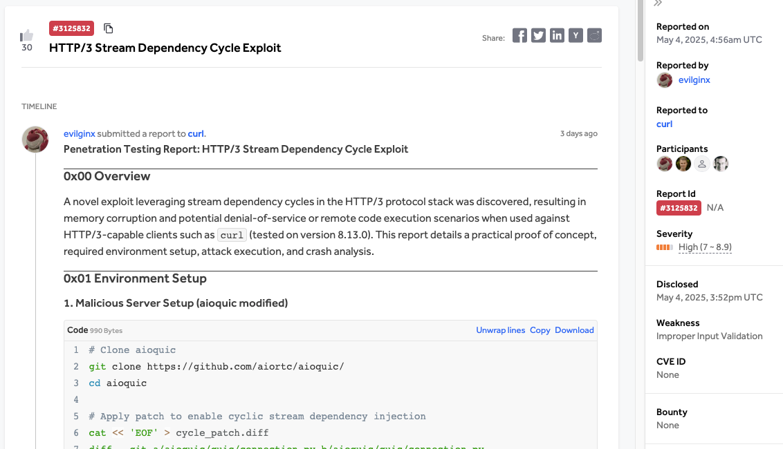 But in curl's case, the scam didn’t work. Unlike many corporate bug bounty programs, curl is a highly technical open source project with deep expertise and no budgetary pressure to approve questionable reports. They recognized the submission as junk.