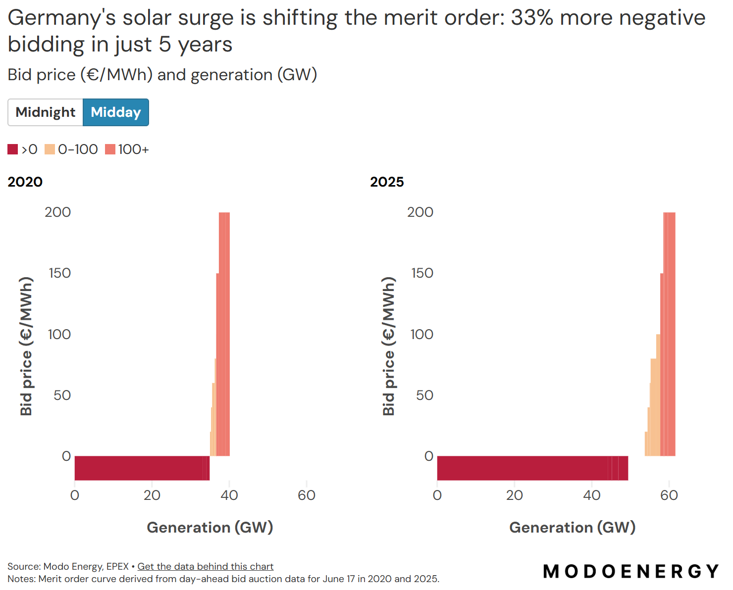 What is incredible is that in the last five years, around 11 GW of additional capacity has been added that bids at negative prices during the day.