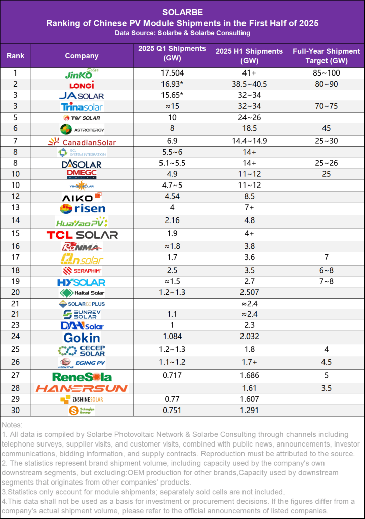 LONGi follows closely, having capitalised on the momentum of its BC modules in the distributed market and its strong capacity in tenders to strengthen its market share. Meanwhile, JA Solar and Trina Solar are in extremely close competition, to the point that they have been jointly classified in the third position, pending mid-year financial reports to determine who ultimately secures a place on the podium.