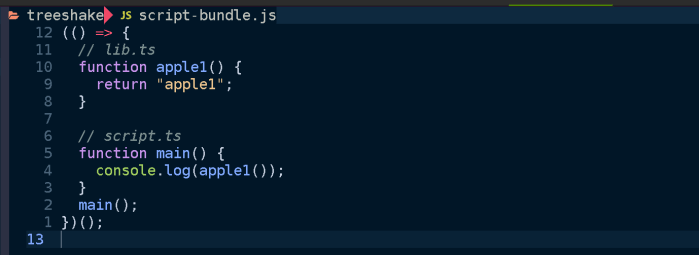 The main point here being that only apple1 is included in the bundled script. Since we didn’t use apple2 it gets shaken out like an overripe piece of fruit.