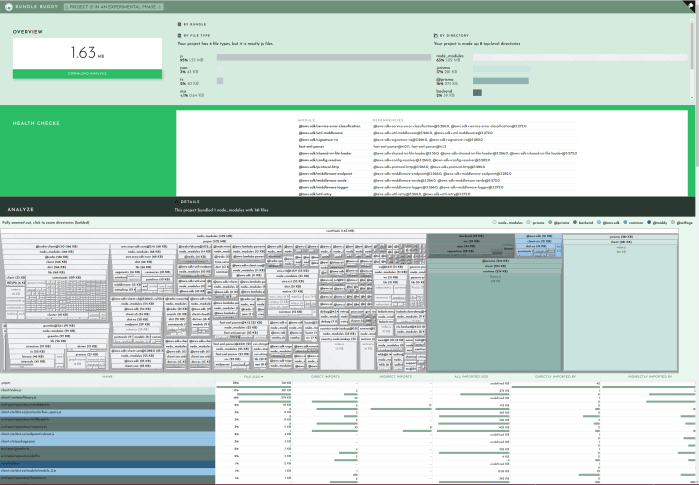 This is a colorful but limited tool for showing you what’s being included in your NextJS build. You add it to your next.config.js file and when you do a build it will pop open tabs showing you what’s being bundled in your backend, frontend, and middleware chunks.