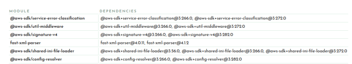 Here you can see I have versions 3.266.0 and 3.272 of the AWS SDK and two versions of fast-xml-parser. and The best way to hunt down why different versions may be included is to simply ask your package manager. For example you can ask pnpm: