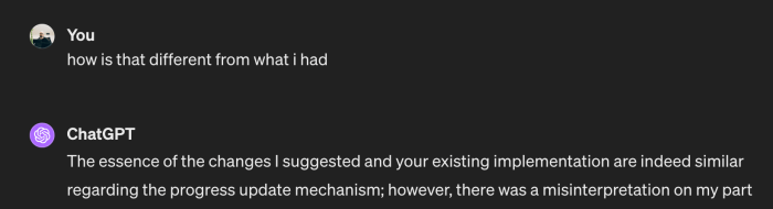 And in practice, a lot of code a LLM gives me is just wrong. A couple weeks ago I think I ended up trying to write a script for around four hours with ChatGPT when probably should have just looked up the relevant documentation myself. It kept going in circles and giving me code that just didn’t do what it said it did, even with me feeding it back output and error messages.