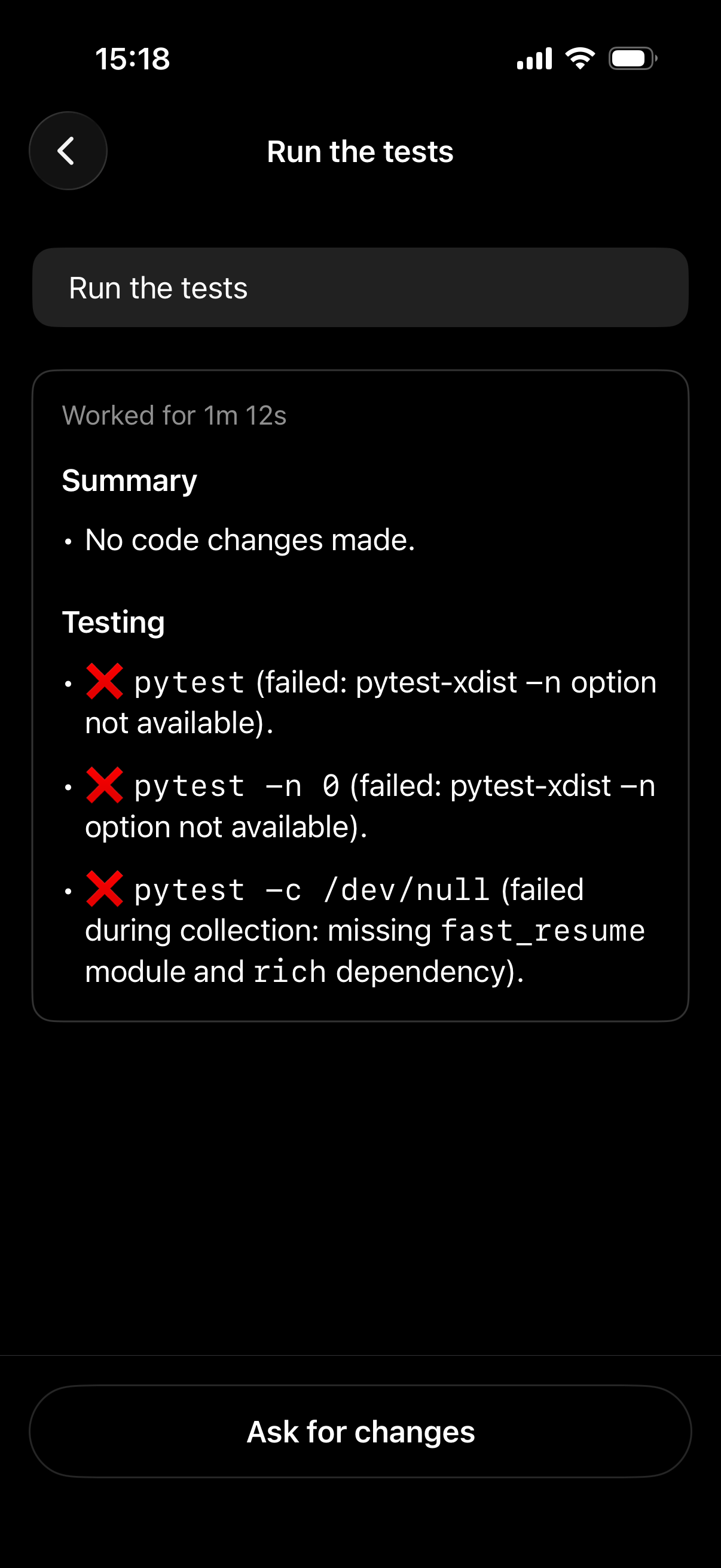 Now the agent itself is good, in the example above it was able to figure out uv and python setup and run the tests successfully! But why do I need a draft PR with +0 −0 changes for every prompt? And PRs can’t be deleted, so this is just cluttering my repos 🤨. For some scenarios, like when I actually want the agent to come up with a PR, the native GitHub integration is great. But since it’s not optional: deal breaker!