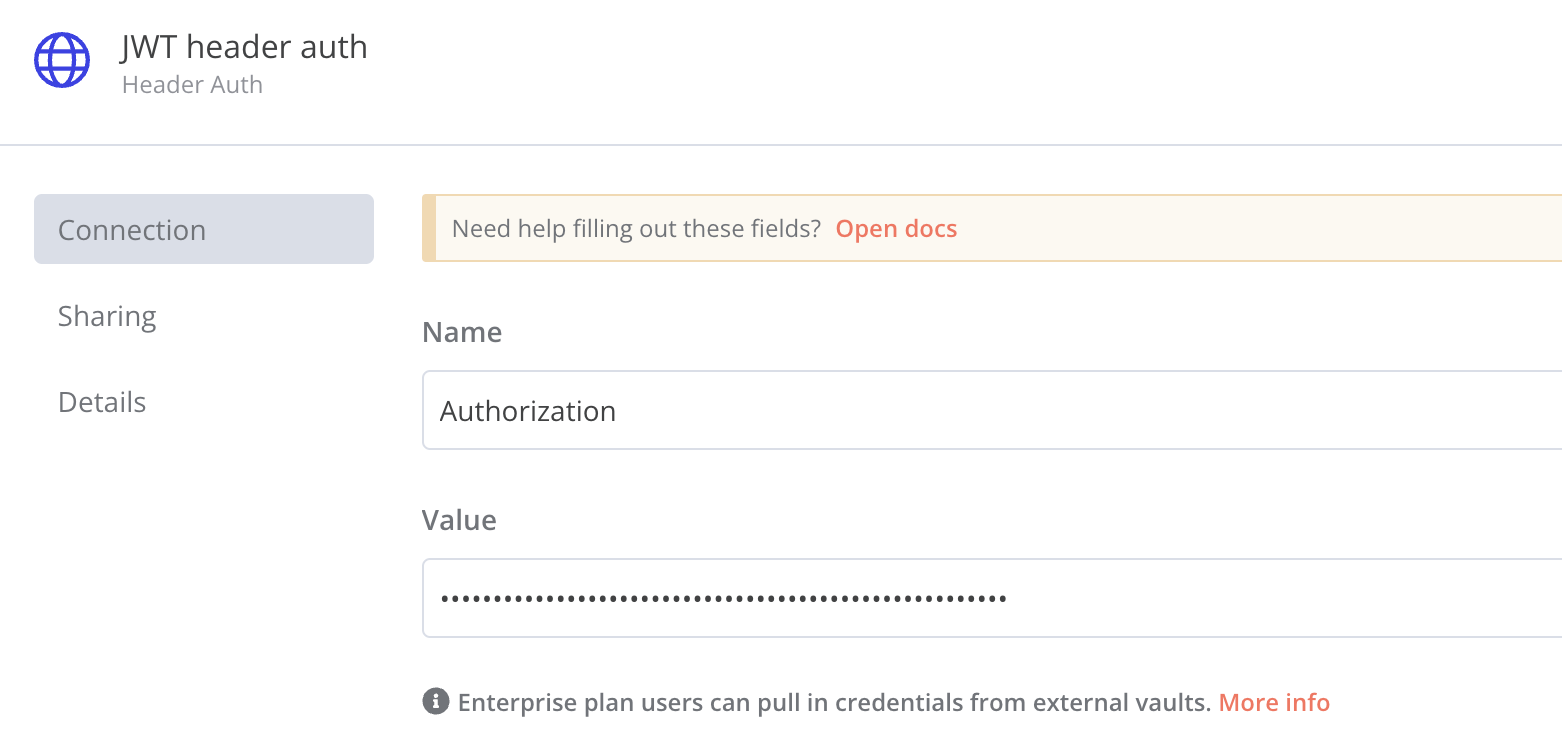 Now edit the HTTP Request node you disabled earlier in your n8n workflow. Edit the Header Auth credential: