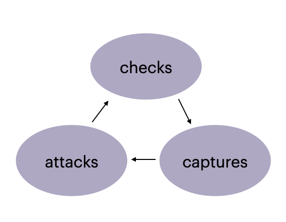 We will start this discussion by introducing an example. One of the first thinking structures that I learnt about in chess is to scan positions for checks-captures-attacks. The concepts are ordered by their respective values; checks are the most forcing moves and therefore should be considered first, then captures (material gain) and then attacks (gaining activity and initiative). Therefore this concept includes three locations and a directional path between them.