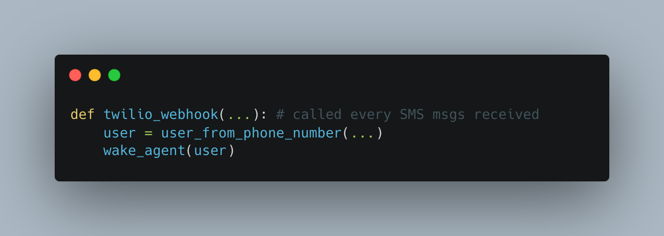 But, this has one big drawback. What happens when we actually want to trigger something from a user action? For example, whenever a customer sends Orin a text, he should respond - even if he’s sleeping for another 6 hours.