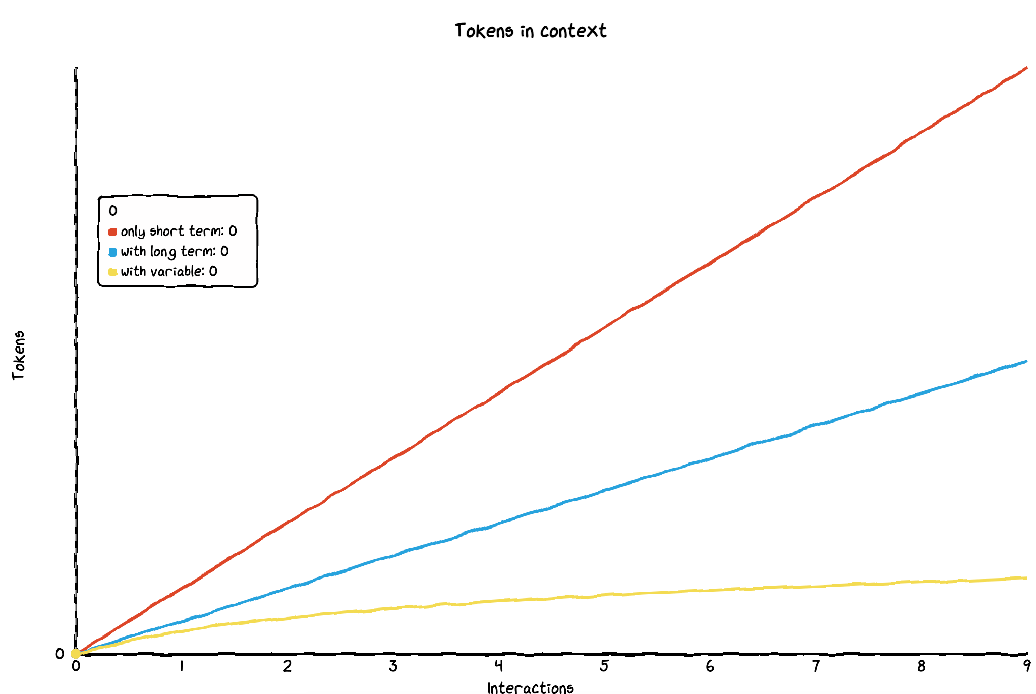 ❌ We could pack everything into context and slice off anything that didn’t fit. It’s simple, effective for a bit, and not over-engineered. However, this obviously doesn’t scale past a certain number of interactions.