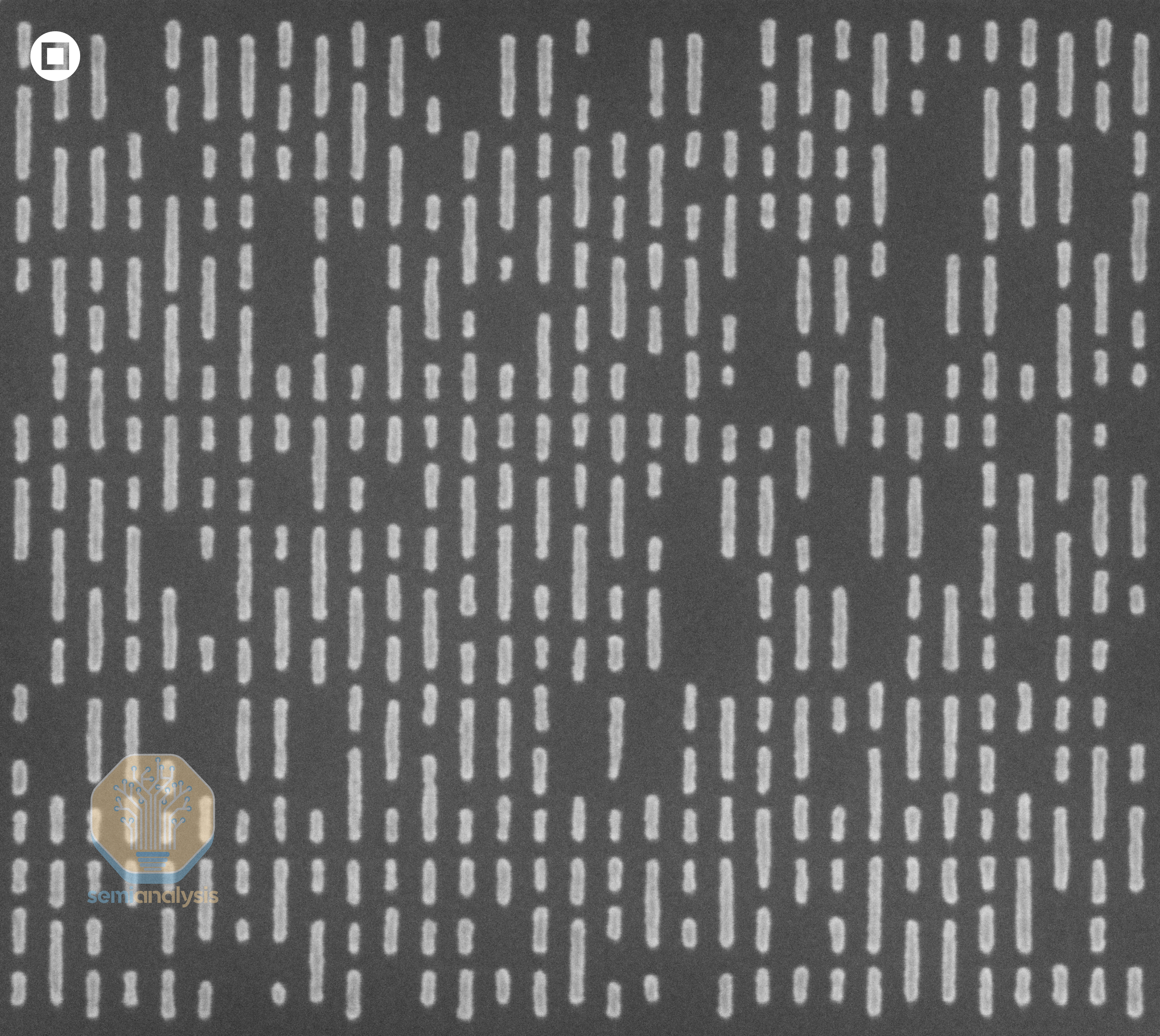 There’s an additional red flag: while they told SemiAnalysis they could do very narrow feature sizes, SemiAnalysis does not state that this is a picture with those feature sizes, and there is no annotation on the image to indicate that they used narrow features.