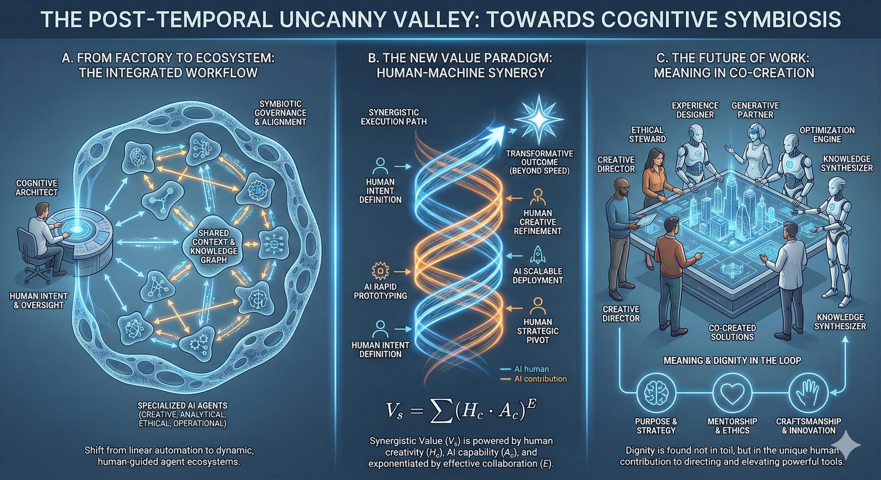 We built our identities on cognitive work. The virtue of effort. The dignity of contribution. The story that said: I think hard, I produce things, therefore I matter. When the machines do the thinking-work at a hundred thousand times our speed, that story stops working.