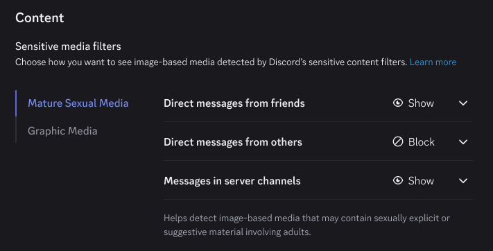 A: Discord’s content safety filters are part of our broader Teen Safety Assist approach. They help reduce exposure to certain categories of potentially sensitive image-based media, especially for teens.