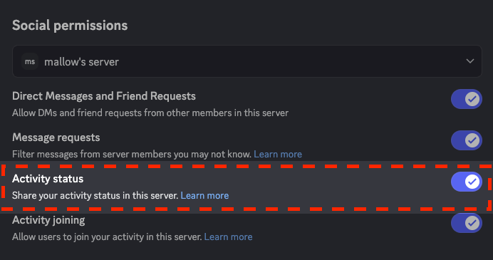 - Your Activity status by default will not be shared to large servers with 200+ members. You can update this setting at any time — age assurance is not required to do so.