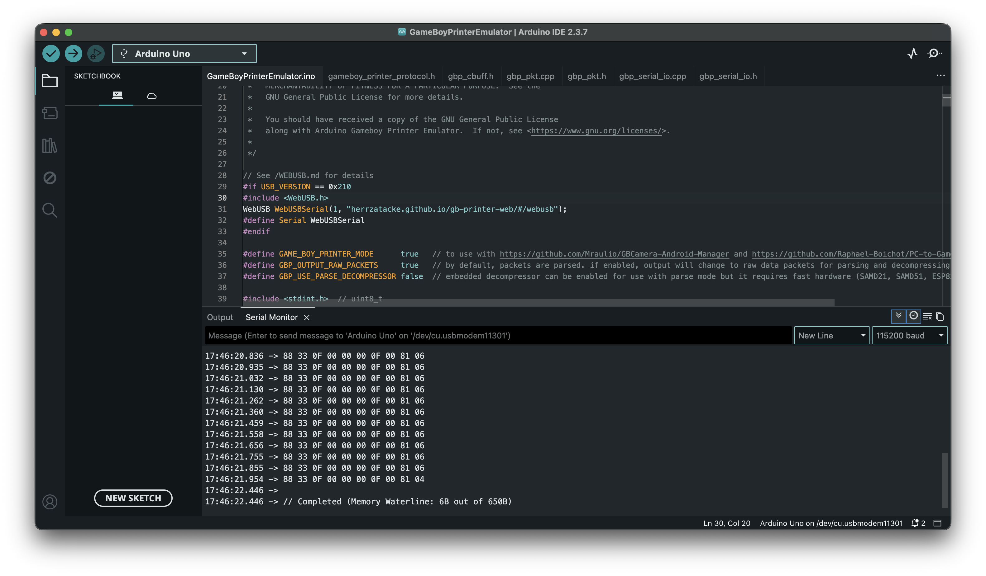 With that sorted out, all that was left was cloning this protocol in software so that you could use an Arduino to emulate the printer and extract the actual image data being printed.