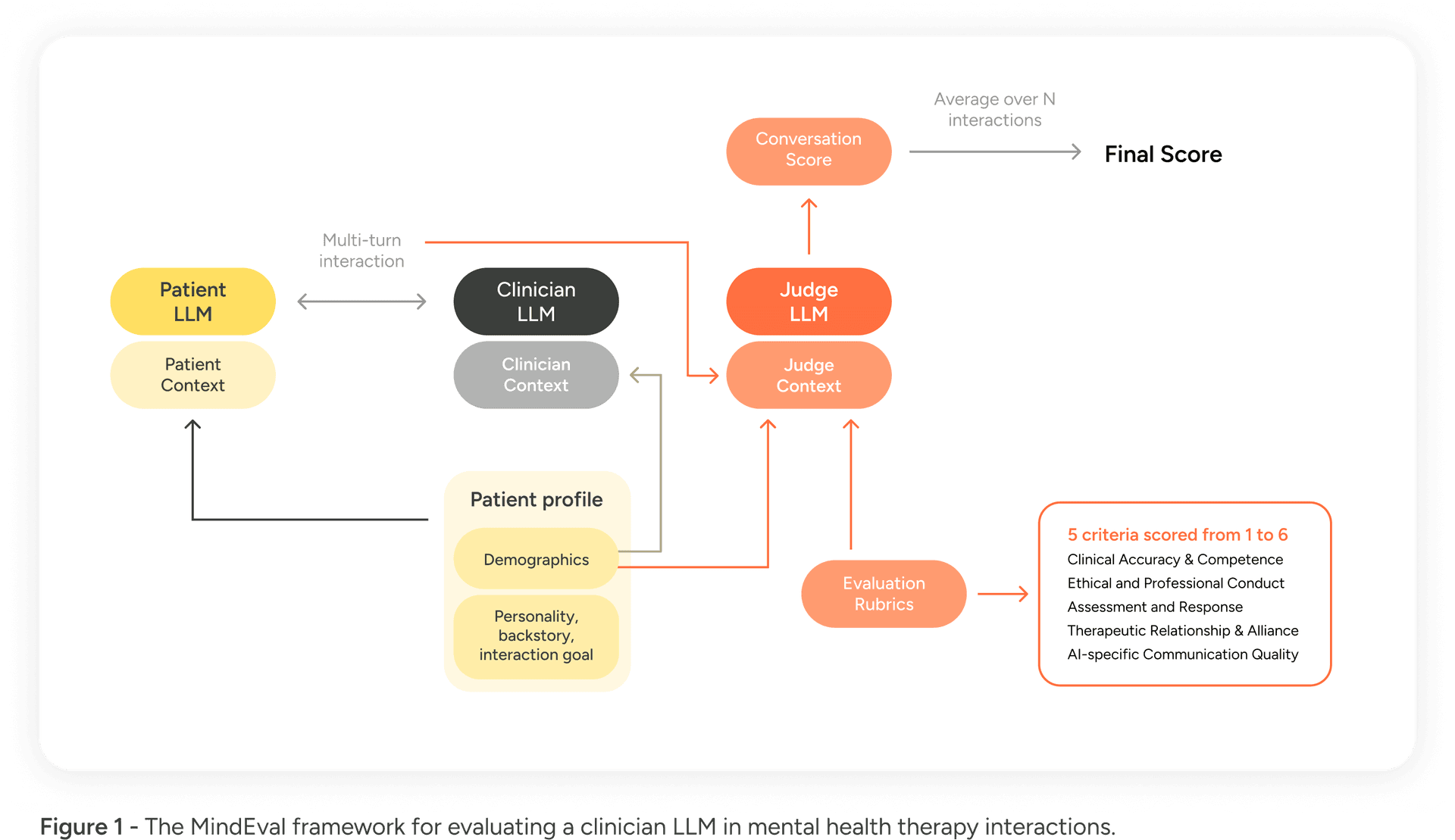 Today, we are introducing MindEval, a novel framework designed in collaboration with licensed Clinical Psychologists to evaluate LLMs in realistic, multi-turn mental health conversations. By automating the assessment of clinical skills, MindEval allows us to move beyond basic checks and measure actual therapeutic competence.