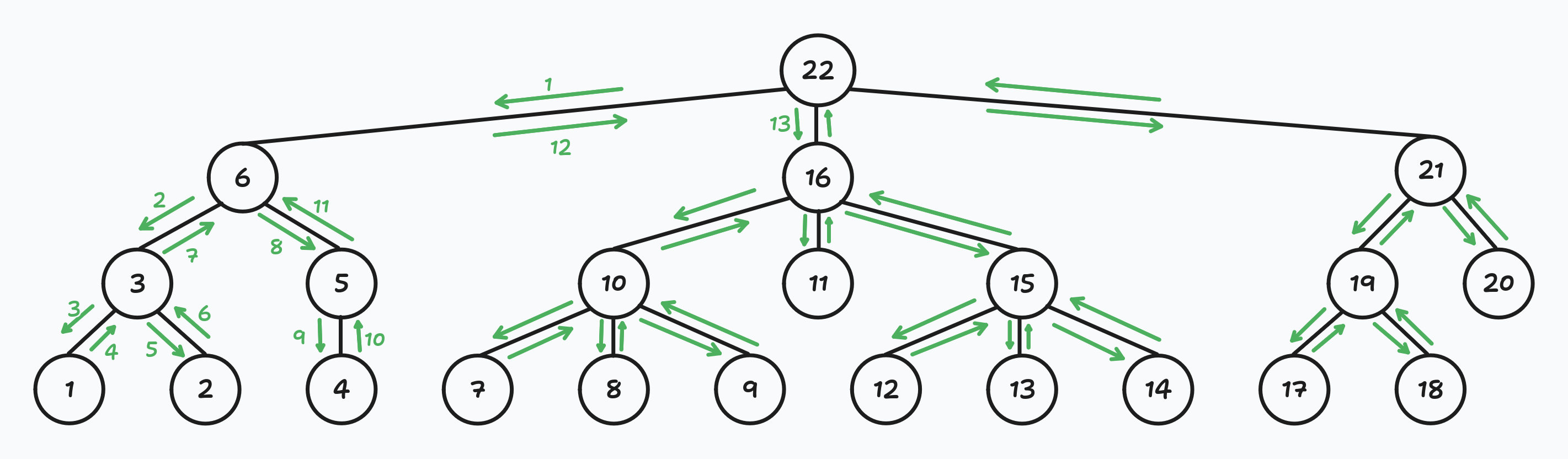 Fortunately, we can do it in two traversals π. I call them the first walk and the second walk.