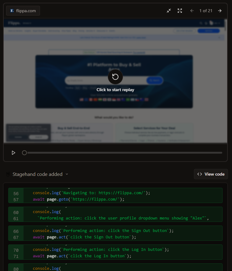This is the only one that I found on X rather than through Google/ChatGPT searches. It takes in a prompt and uses that to generate Stagehand code that executes in a Browserbase-powered environment. Definitely seemed like it’d fit the bill.