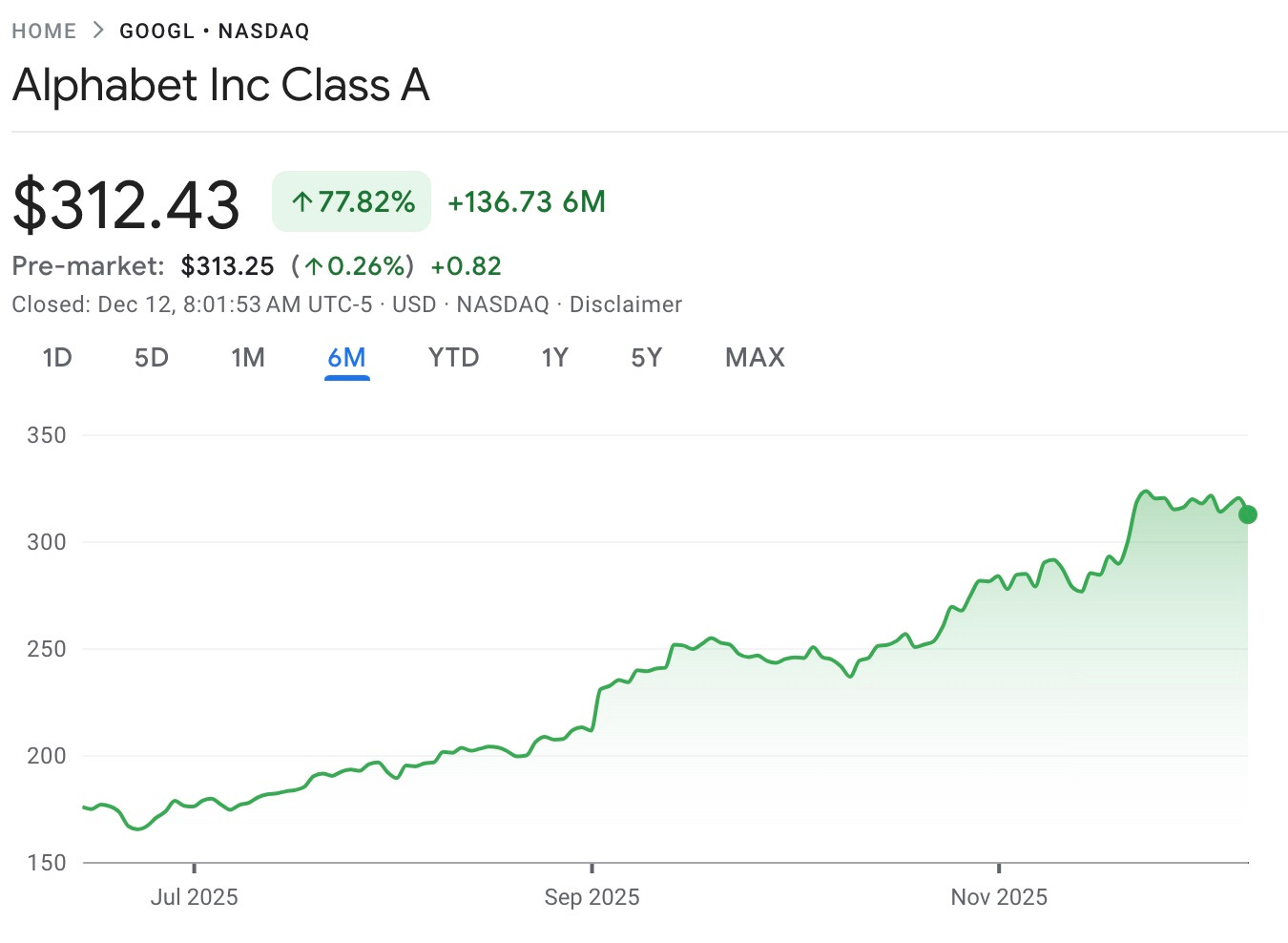 Not just a vibe-shift either as Alphabet’s stock price has been on a tear: