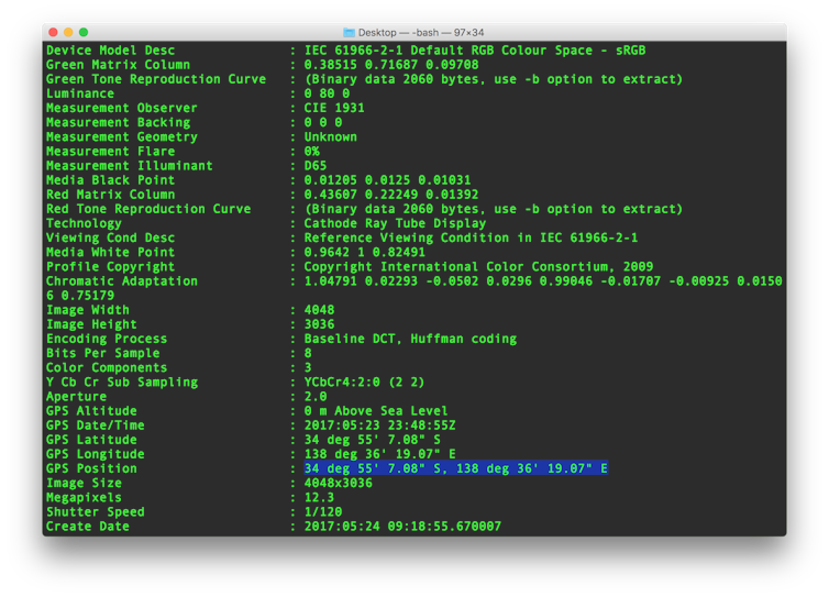 There are more than 460 metadata tags within the exchangeable image file format for digital still cameras (EXIF 2.3). This specification helps cameras use formats that can be exchanged between devices – for example, ensuring an iPhone photo appears correctly on a Samsung device.