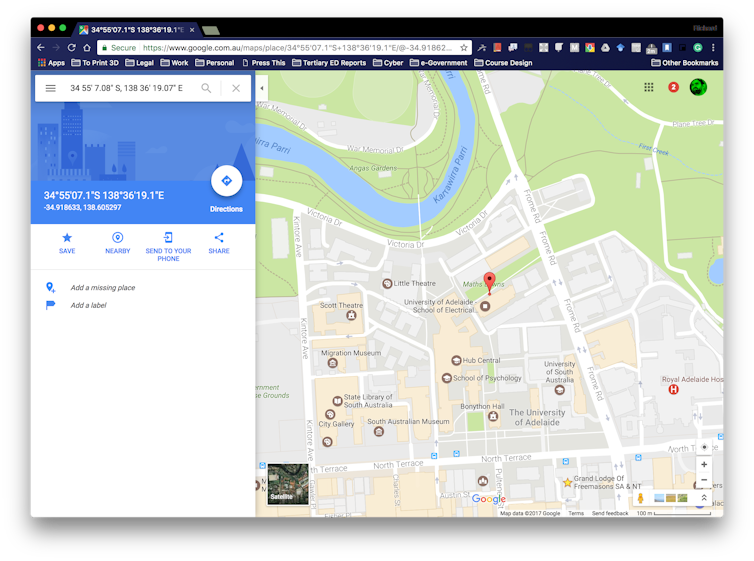The GPS coordinates are embedded directly in the image metadata. By placing these coordinates into Google Maps, the exact location of my office is displayed.