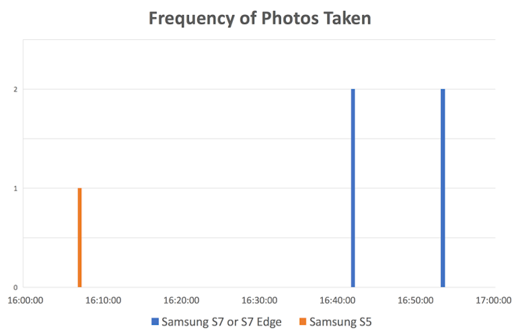 The time the images were taken was also shown in the metadata, allowing a timeline of when the images were taken and by who to emerge.