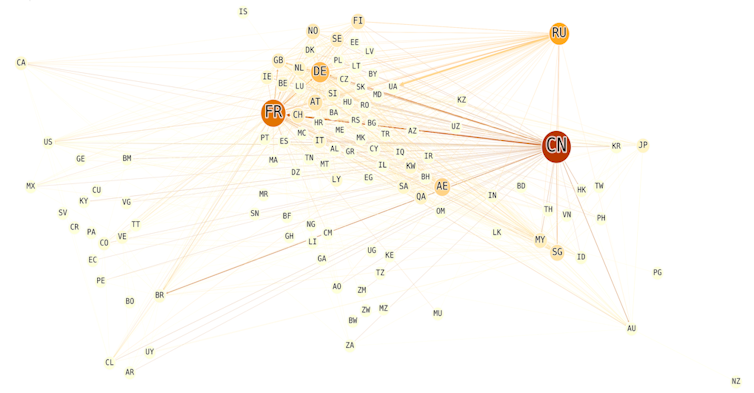 Notice the paramount position of China (CN), which controls over 1,000 TSOEs, including the likes of Sinopec and ICBC China. Countries like France (FR) and Germany (DE) are also prominent owners, but their connections to China highlight that they are targets of TSOE investment, too.