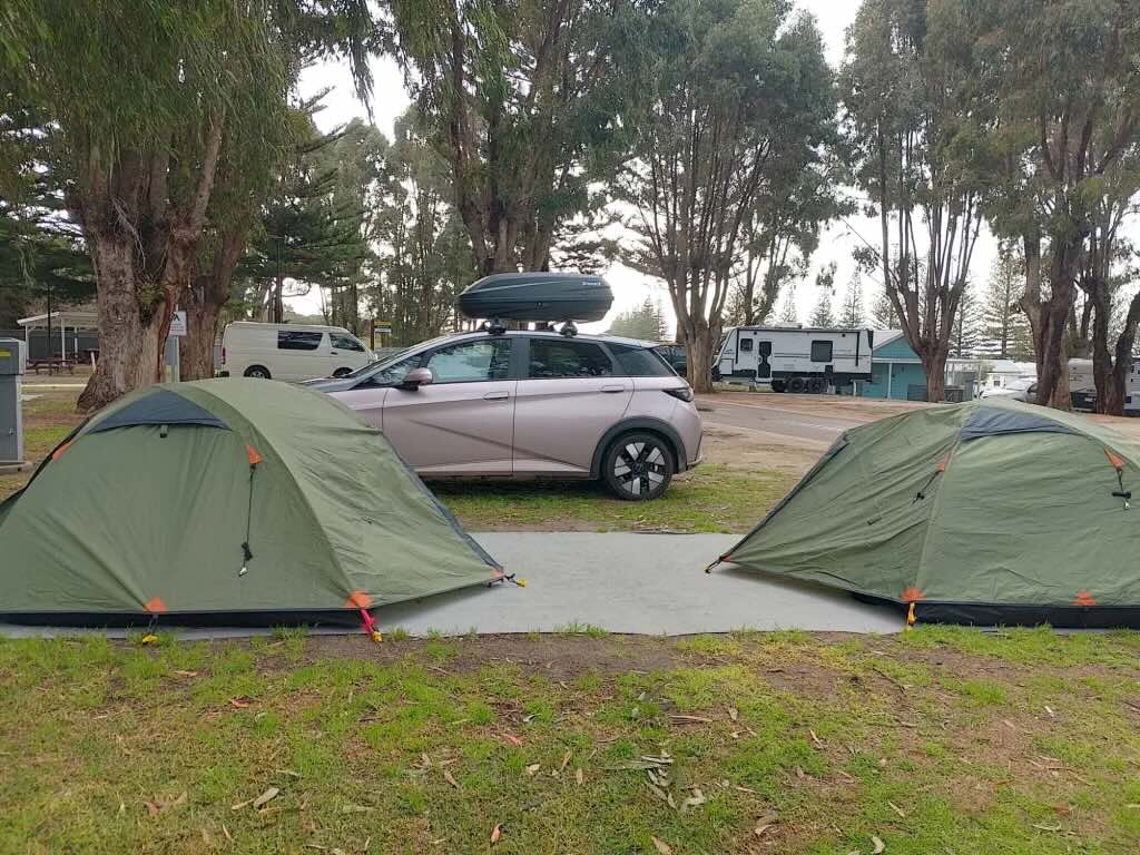 We set off from Adelaide in winter with a roof pod on our BYD Dolphin, tents, an induction hotplate, and an assortment of charging cables.