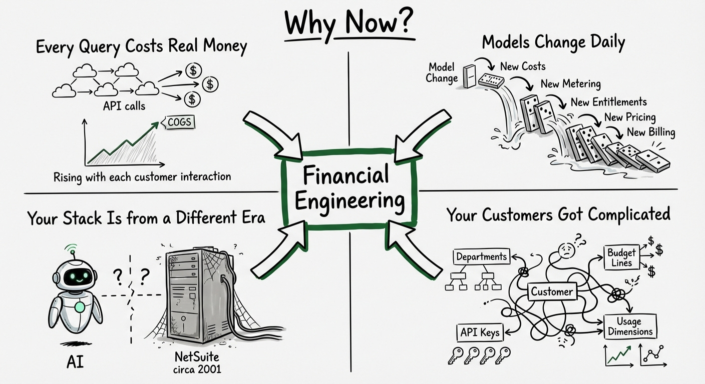 Funny. Because every day I talk to software engineers working on one of the least glamorous problems in our industry: building the systems that turn what we ship into revenue. Pricing. Metering. Entitlements. Billing. The stuff that breaks and leaks revenue, like an enterprise customer abusing their limits for years without anyone noticing.