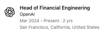 OpenAI appointed Sara Conlon as Head of Financial Engineering. She built an entire organization around it, organized into four dedicated pods: Pricing & Packaging, Monetization Infrastructure, Financial Automation, and Payments. At OpenAI, financial engineering is not a side project. It’s a core platform function.