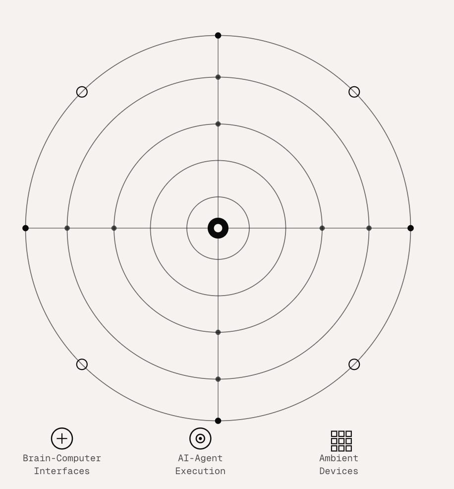 A brain-computer interface reads your thought. AI agents execute on it recursively. A cloud of ambient devices provides all the context needed to get it done. You don’t manage the process. You think and reality reorganizes.