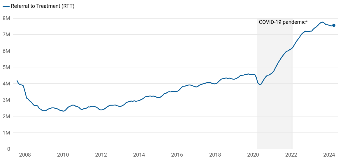 UK healthcare waiting list stands at a record high of 7.8 million patients