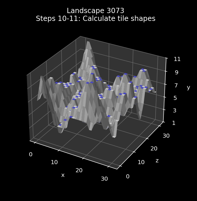 Here's a top-level breakdown of the full 11-step landscape generation process. I'll go into more detail about each step below, and you can click on a step number to jump straight to the detailed explanation: