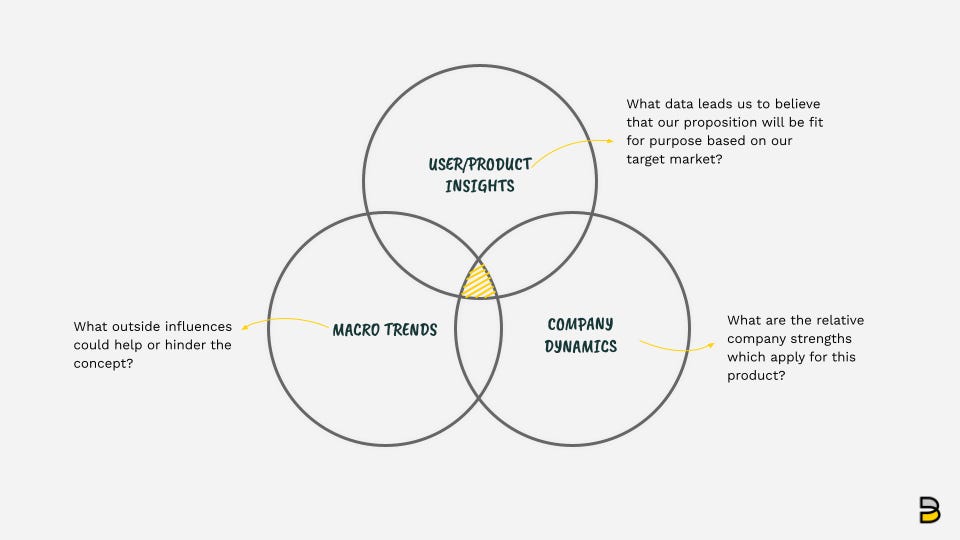 Not all new product ideas set out to capture $100m. Even still, using this approach you’ll be able to gauge your market model fit. It will force you to think about your pricing strategy and how many customers you’ll need to build a sustainable business.