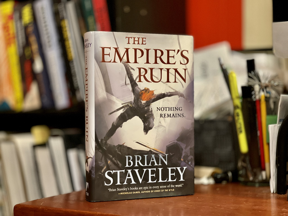 I'm a big fan of Staveley's books—he's a fellow Vermonter, but I've appreciated the epic world that he created for this series, the characters who occupy it, and the twists and turns that he's taken me on over the course of his five novels. With The Empire's Ruin, I felt that he leveled up significantly, telling an intense character story that blended weird horror with an epic quest, and puts the future of his world into incredible peril.