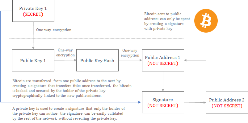 When a valid transaction is broadcast, bitcoin are spent (or transferred) to specific bitcoin public addresses. Public addresses are derived from public keys, which are derived from private keys. Public keys and public addresses can be calculated using a private key, but a private key cannot be calculated from a public key or public address. It is a one-way function secured by strong cryptography. Public keys and public addresses can be shared without revealing anything about the private keys. When a bitcoin is spent to a public address, it is essentially locked in a safe, and in order to unlock the safe to spend the bitcoin, a valid signature must be produced by the corresponding private key (every public key and address has a unique private key). The owner of the private key produces a unique signature, without actually revealing the secret itself. The rest of the network can verify that the holder of the private key produced a valid signature, without actually knowing any details of the private key itself. Public and private key pairs are the foundation of bitcoin. And ultimately, private keys are what control access rights to the economic value of the network.