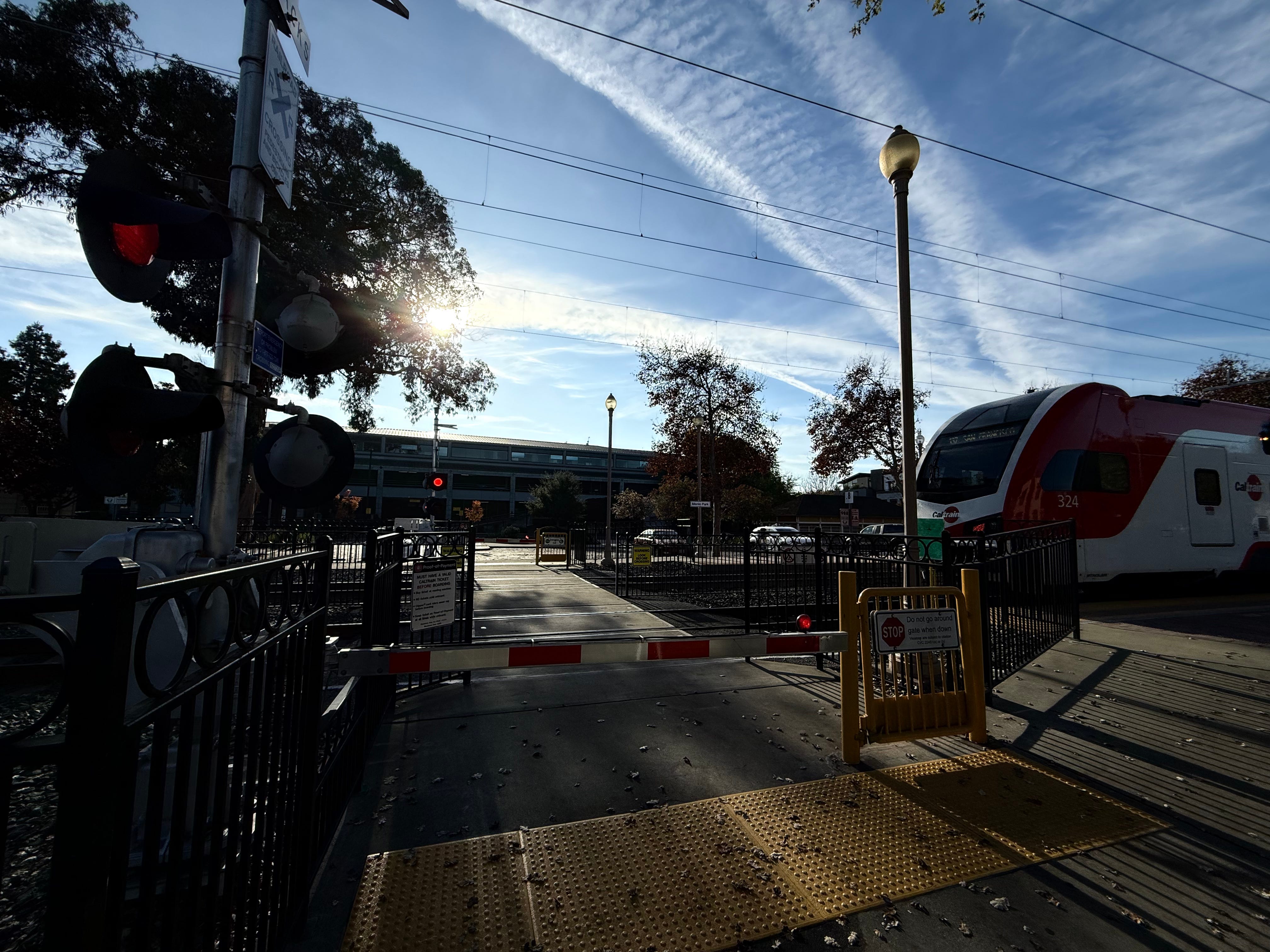 Every morning I take a northbound Caltrain to Menlo Park and wait for a minute at this crossing:
