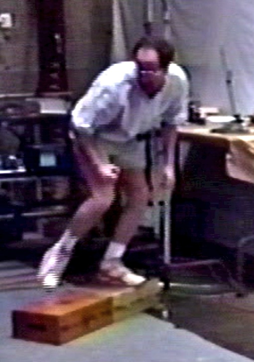 Anyway, so I banged myself up. I didn’t think much about it. The next week I was up at ILM and we were hooking up the miles of wires that had to be hooked up to the DID. And I’m underneath the table and all of a sudden my leg won’t straighten out. My leg is just locked up in a bent position. I’m like, ‘Oh, that’s weird. Holy shit, man, my leg won’t work. Oh, man.’