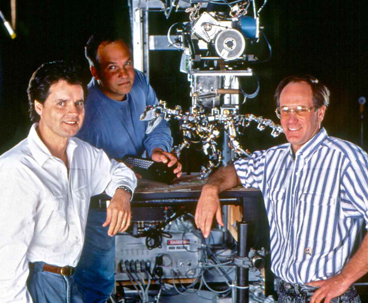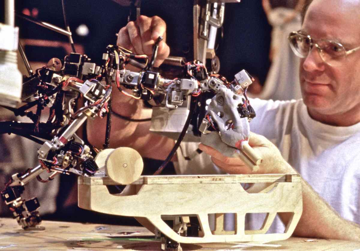 Brian Knep: When Tippett’s team first started doing the dinosaur input device, you know, they would just move this thing, move the dinosaur and then hit a keyboard, hit key like the space bar or the return key, I can’t remember, and that would save the pose. But when the animators first started doing it, they would move it and then they would run out of the frame, like they used to with a real camera. They didn’t realise that they wouldn’t be in frame anymore! I loved that.