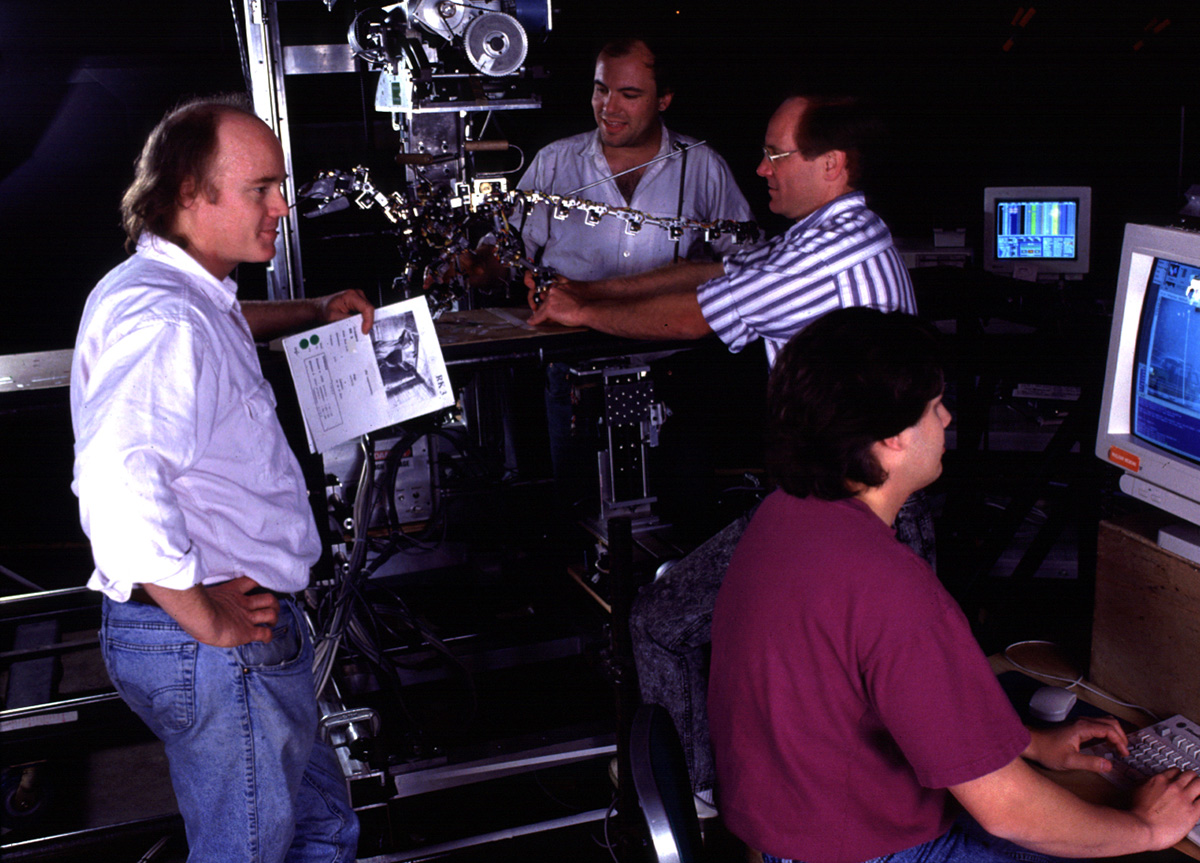 Tom Williams: Those optical encoders weren’t very precise at the time. But what we could measure was their position on an average. When you fed that to the animation software system via an armature, which they had developed using Rick’s encoders, it just did it all brilliantly.