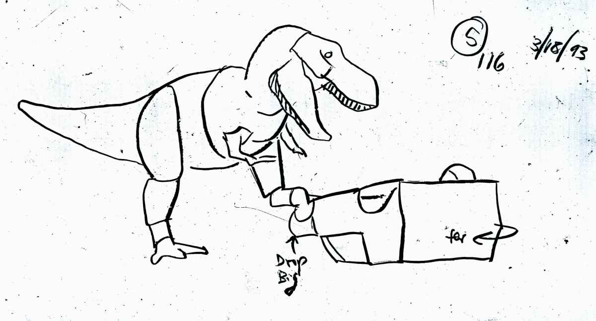 Randal M. Dutra (senior animator, Tippett Studio): Quite simply: The “Dinosaur Input Device” was created to keep Tippett Shop in the Jurassic Park game. It was announced to the shop in April of 1992 that JP was going CG. As Senior Animator for Tippett on JP, I was already five months into pre-production having completed the “Dinosaur Movement Bible” (Raptor and T.rex) and was immersed in the Animatic phase of the “Raptor Kitchen” sequence.
