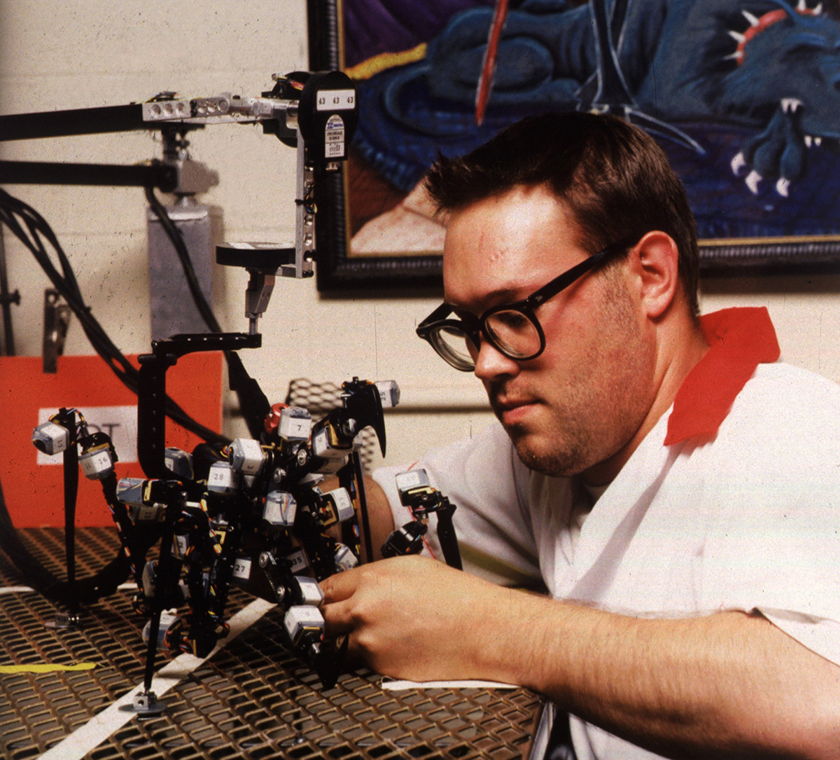 And then you could start moving, and it would register, ‘Oh, I moved this far from zero.’ But they weren’t absolute. So, that coupled with noisy electronic spikes could really wreak havoc. If one of the legs all of a sudden goes, ‘Oh, hey, now, I think I’m at a completely different angle because I got a little electrical spike…’, you’d look on your computer screen and see the representation of the model and just all of a sudden its legs were shooting out to the side. And you knew that the animator didn’t do that and the model is not doing that, but your computer model is doing that.