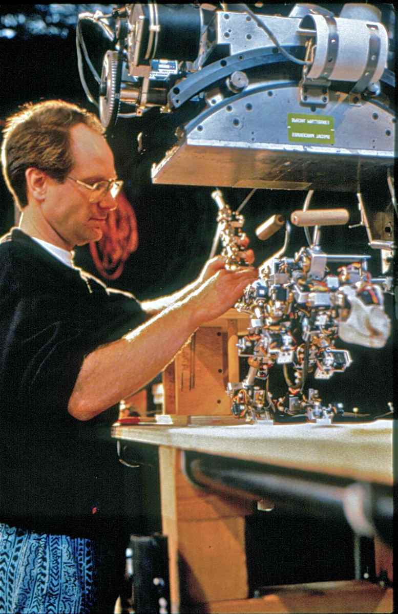 We were really lucky at the time in that Phil knew Stuart Ziff, who he had worked with on some of the go-motion stuff. Stuart is kind of an electromechanical artistic genius. And he came in to help out and brought another world of experience in terms of things like the wires that we would use. I would use wires from the local Radio Shack, or a local electronics surplus store. And I thought that stuff was fine. Well, Stuart comes in, and it’s like, ‘Oh, no. This is never gonna work because you’re gonna stress those things out with too many bends and they’re gonna break.’