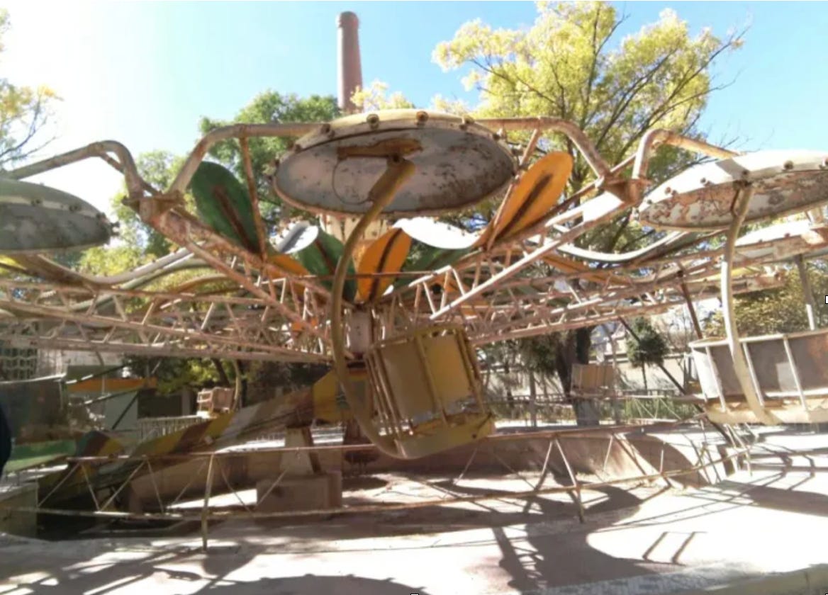 Photo|The long-abandoned amusement rides at the entrance of the zoo.Photo by the author