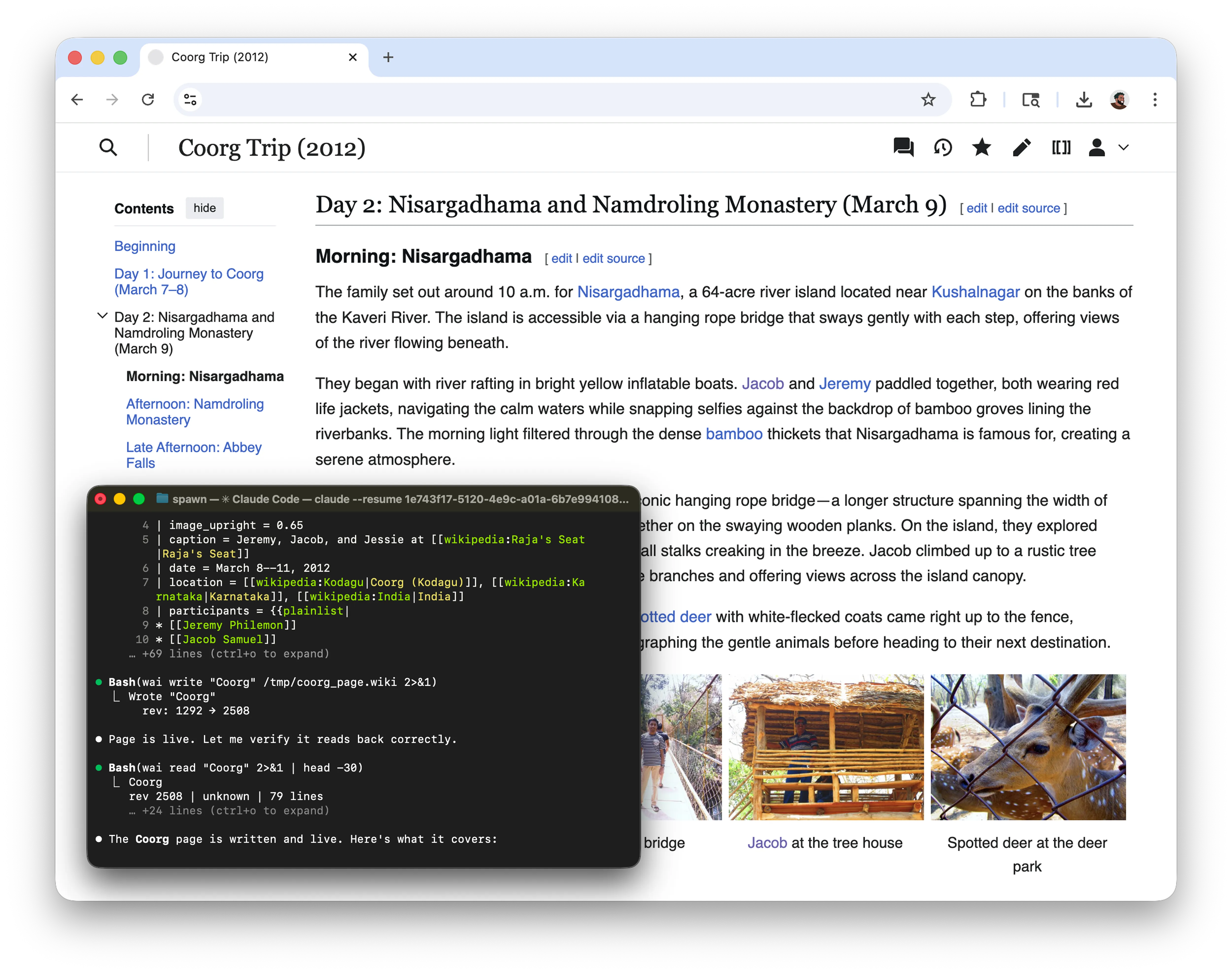 This time, without any interviews, I wanted to see if I could use a language model to create a page based on just browsing through the photos. As my first experiment, I created a folder with 625 photos of a family trip to Coorg back in 2012.