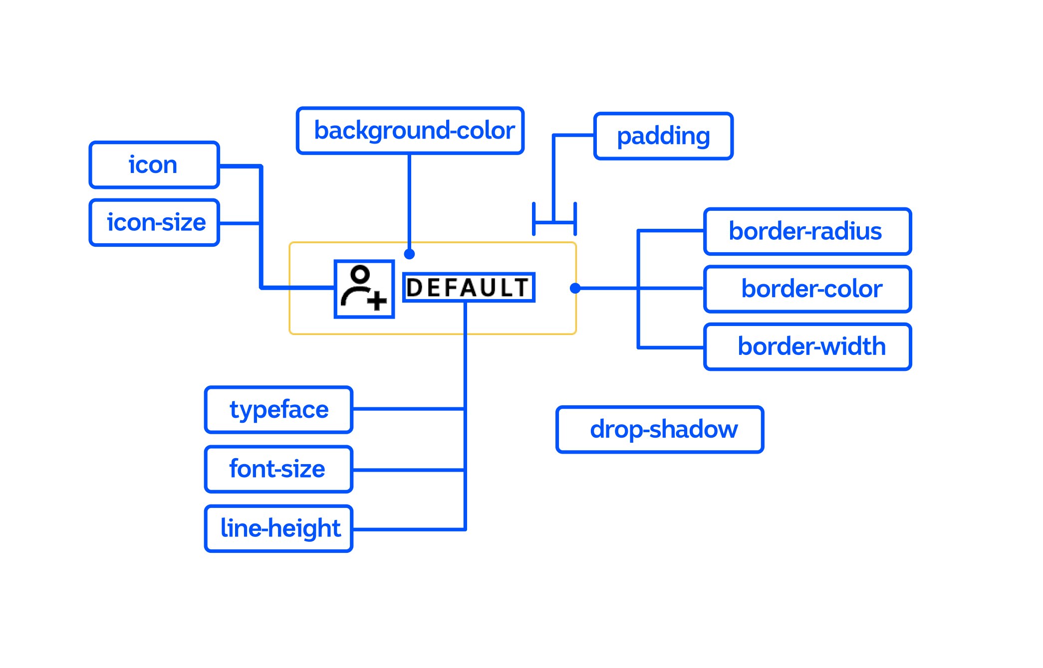 The majority of changes in our daily work are small visual tweaks to existing components. We have been exploring design tokens as a way to make these common changes. Design tokens are the atomic elements of design such as fonts, colours, sizes, spacing, etc. The concept of Design Tokens were pioneered by Salesforce in an article from 2014. The tokens act as a lexicon that aligns design and engineering to ensure visual consistency. We can use design tokens as a mechanism to allow for high fidelity visual changes without needing component refactoring. The values of the design tokens should inherit from an ancestor component so a product with a different theme or even just used in a specific context can change these tokens without needing presentational props or refactoring.
