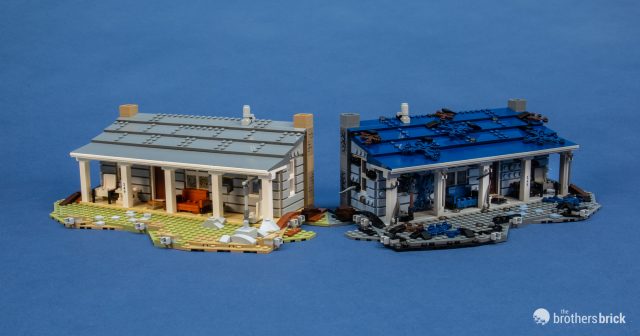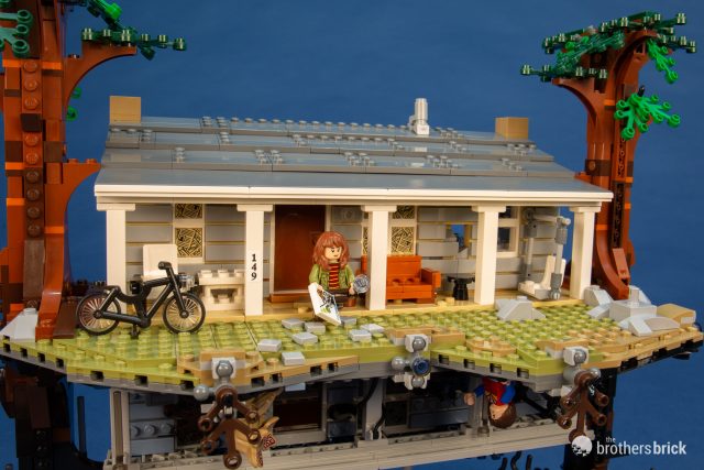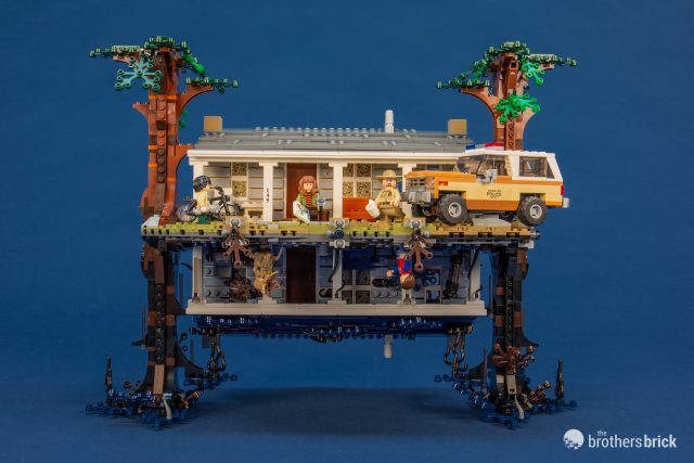 The set includes eight minifigures, the mirrored house, Chief Hopper’s Blazer, and a small display stand for some of the minifigures. The scenes in the set span seasons 1 and 2, so there may be a few very mild spoilers. Let’s dig in and see how LEGO accomplished an upside-down house in the first-ever Stranger Things set.
