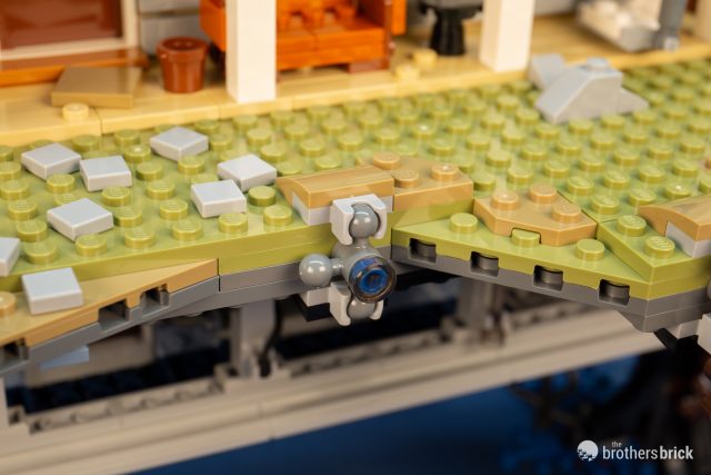 The first thing that strikes me is the wonderful color palette. Most LEGO sets feature bold, saturated colors: green or bright green grass, blue water, etc. Fans have been heavily using earth-tone colors for as long as they’ve been available, but the company itself has been slower to adopt the trend. This set leans wholly into the subtler earth-tone palette and it looks amazing. There is only a tiny handful of primary-colored elements in the whole 2,200-piece set.