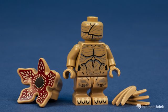 When the Demogorgon open flower-head is removed, the minifigure head beneath shows the head petals closed. The Demogorgon minifigure is definitely a bit cuter (and shorter) than its terrifying on-screen counterpart, but it’s overall a pretty good translation to the squat proportions of a minifigure.